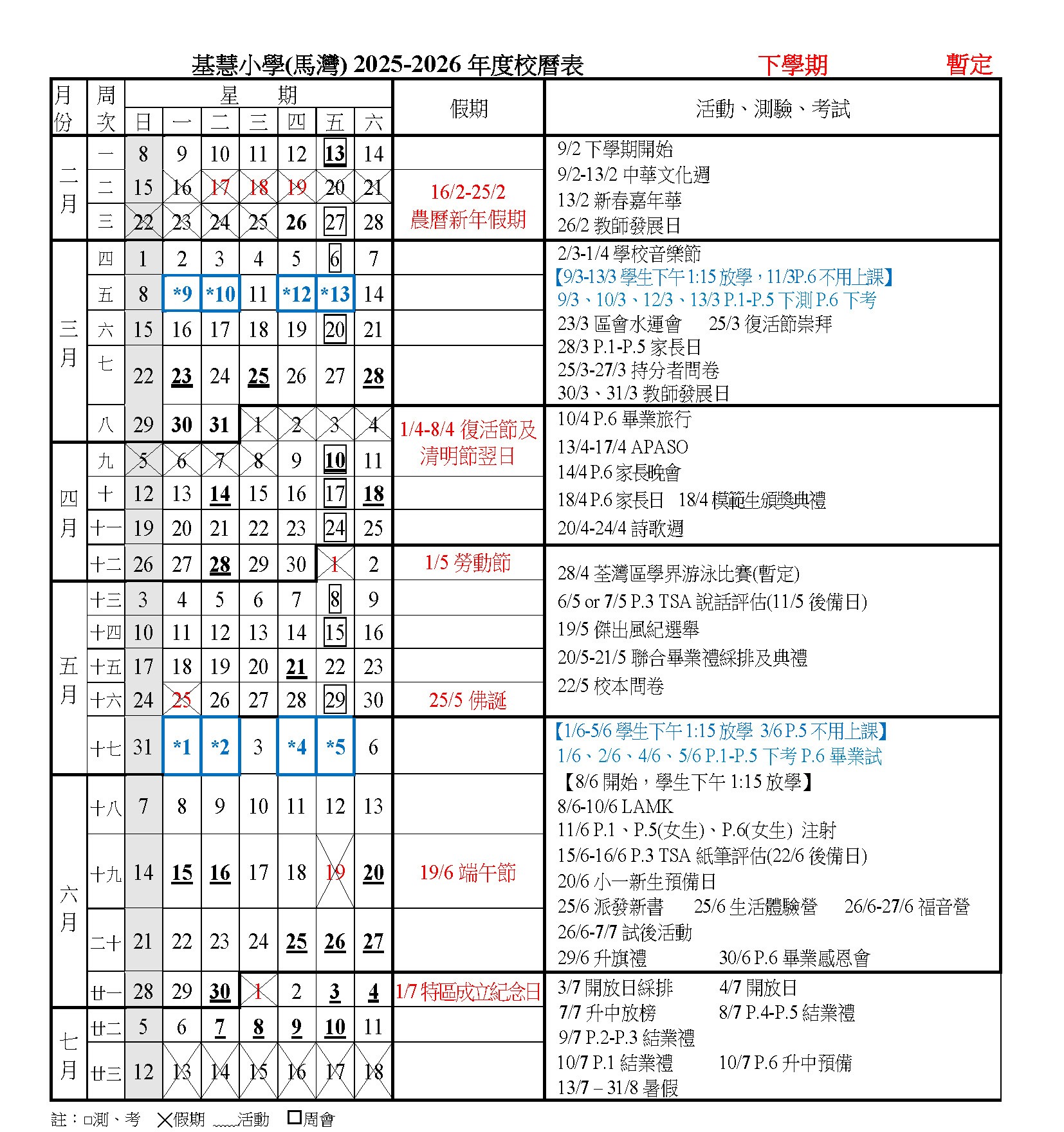 校曆表